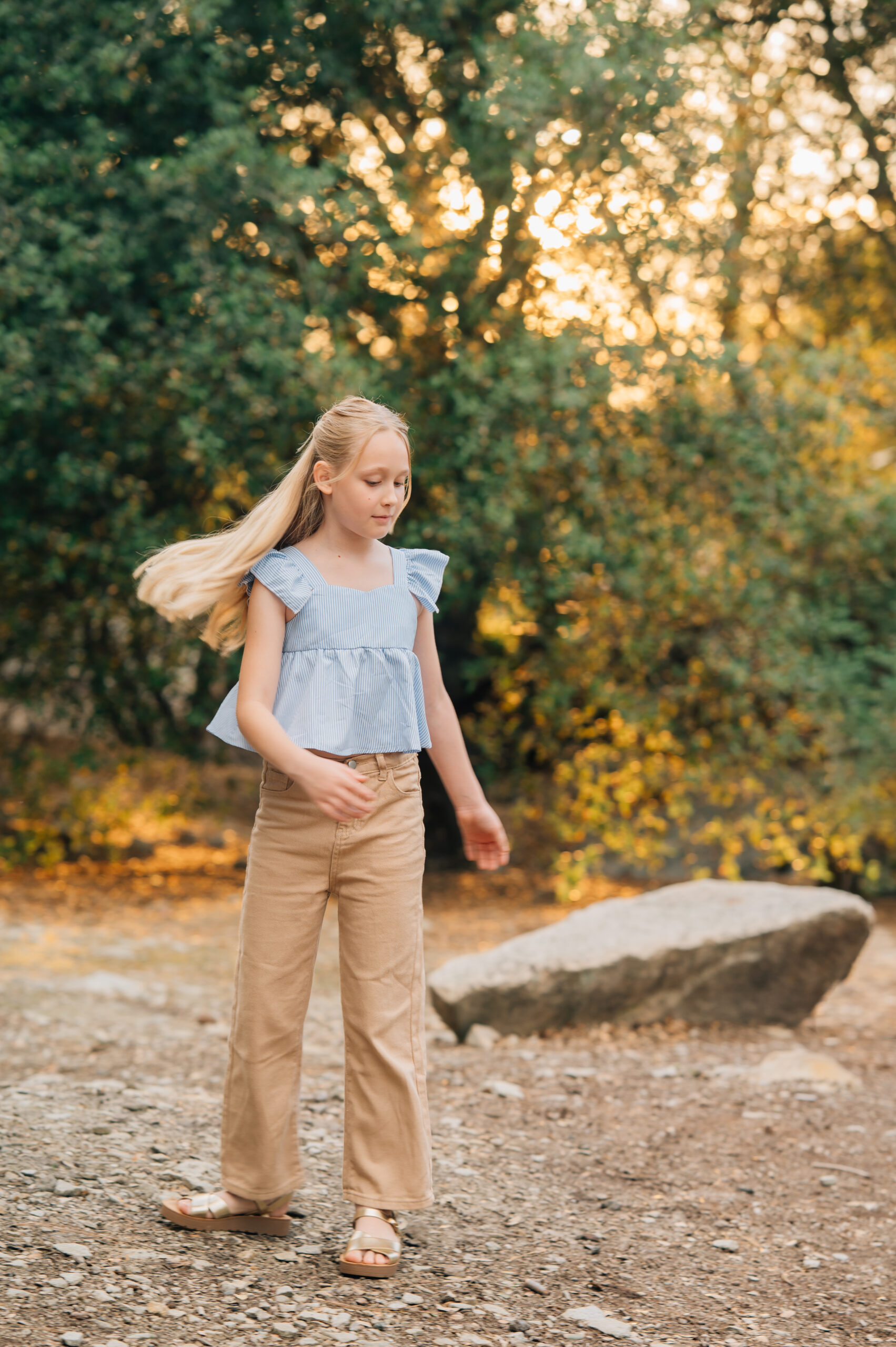 Golden hour gave us the most dreamy light to work with, wrapping everything in soft warmth as we moved from the quarry to the open grass. That transition felt like a perfect reflection of the session itself, starting grounded and exploratory, then opening up into light, movement, and joy. The girls ran, danced, and soaked up every last bit of sunshine, completely at ease and fully themselves.